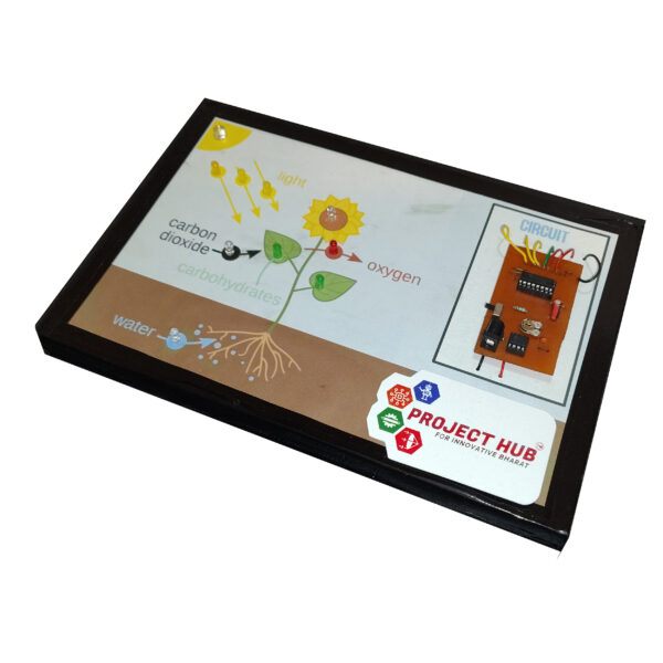 - LEDs (Light Emitting Diodes): Different colored LEDs represent sunlight, carbon dioxide intake, water absorption, and oxygen release.